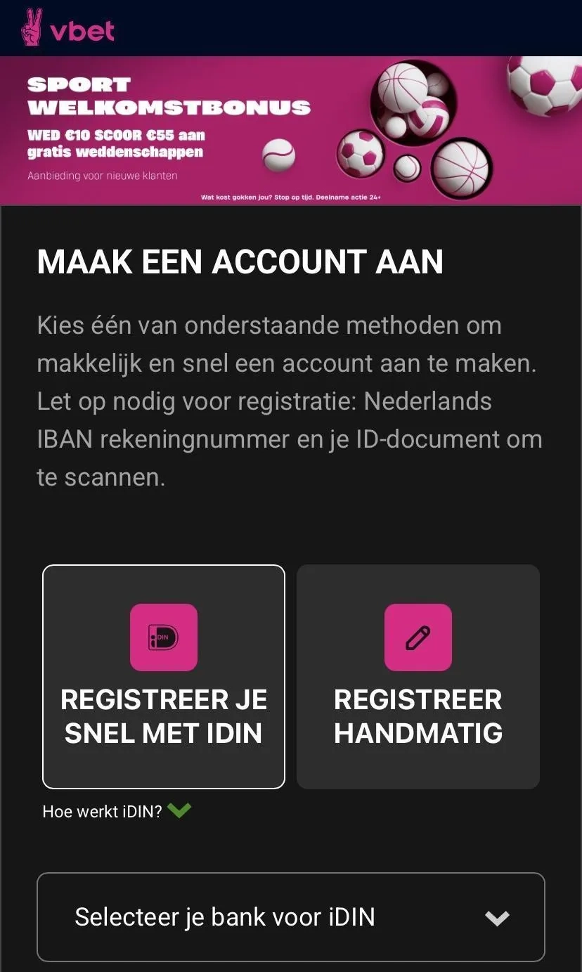 - Kies iDIN (5 минут) of handmatig (NAW, e-mail, IBAN, BSN).